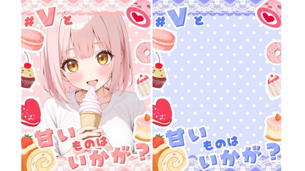 ホームTwitter素材 Vと甘いものはいかが?【#VTuber素材】 SHARE ポスト シェア はてブ LINE ポスト シェア はてブ LINE 目次 使用例 文字ありフレーム 背景 ⭕️色加工・変形 ⭕️️イラストやアバター・ロゴなどを組み合わせての商用利用️ ⭕️クレジット無表記(素材の色加工・変形時・商用利用時はクレジット表記必須) ❌自作発言・二次配布 ❌その他利用規約違反行為 使用例 文字ありフレーム クリックして画像を拡大 クリックして画像を拡大 クリックして画像を拡大 クリックして画像を拡大 クリックして画像を拡大 クリックして画像を拡大 クリックして画像を拡大 クリックして画像を拡大 背景 クリックして画像を拡大 クリックして画像を拡大 クリックして画像を拡大 クリックして画像を拡大 クリックして画像を拡大 クリックして画像を拡大 クリックして画像を拡大 クリックして画像を拡大